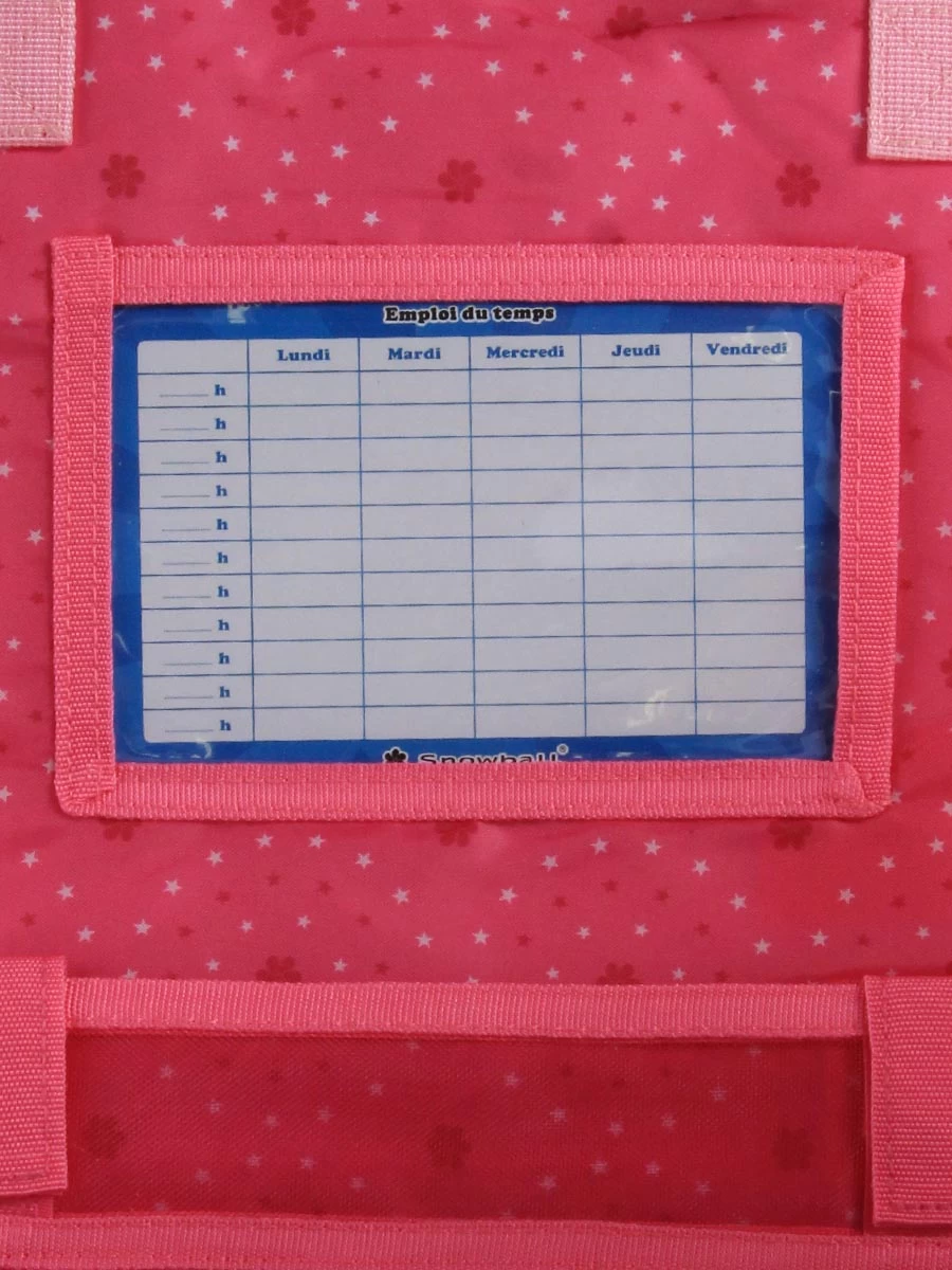 Le cartable ergonomique Snowball Romantique Licorne permet d’organiser soigneusement les cahiers, livres et classeurs grâce à ses deux compartiments et au porte-planning situé sous le rabat. La règle dispose de son emplacement dédié avec le passant à bandes velcro. Une petite poche zippée permet de garder les petits accessoires comme la carte de cantine en sécurité. Cahier de texte et pochette de crayons de couleur trouvent quant à eux leur place dans la poche frontale.
