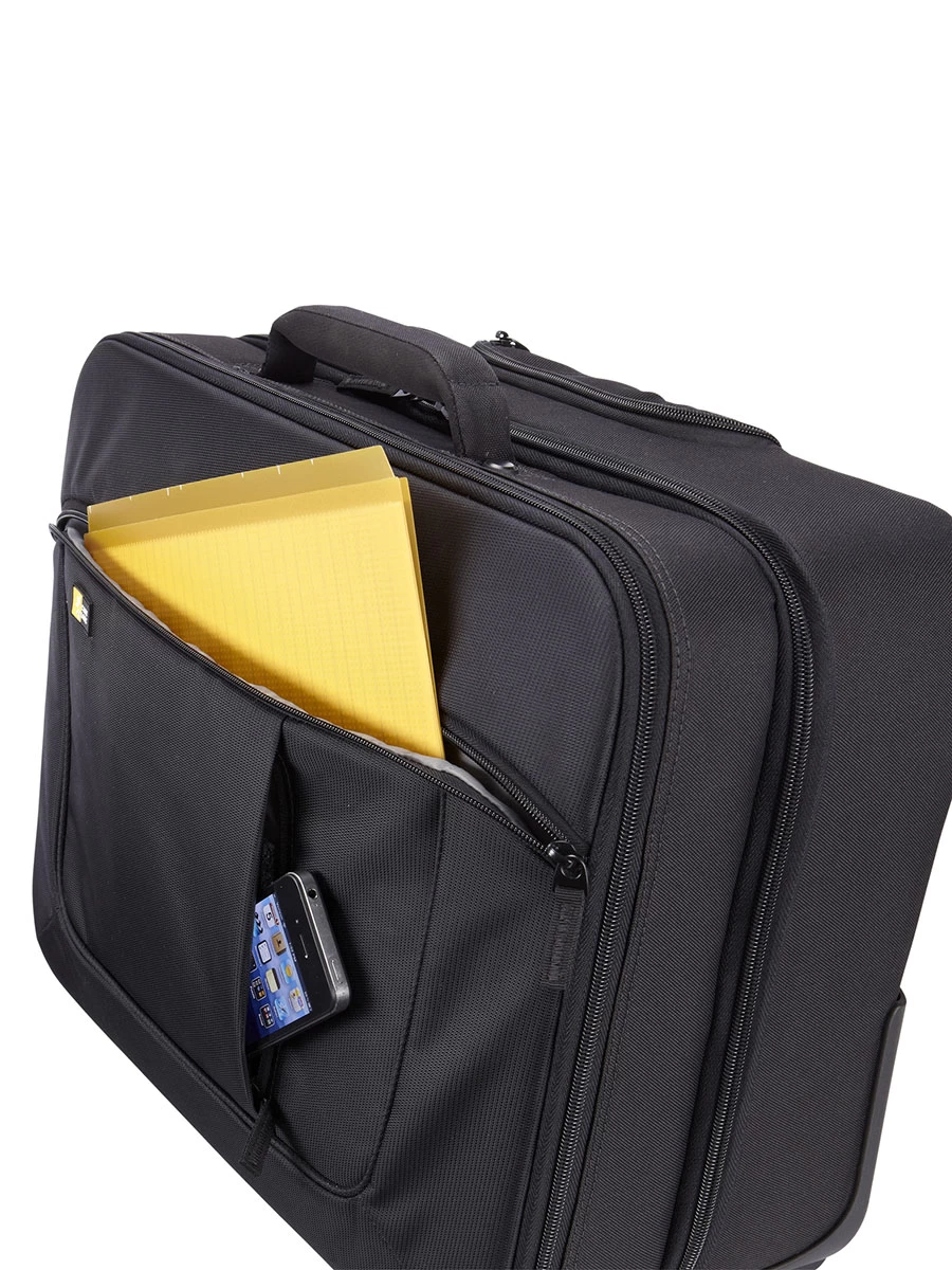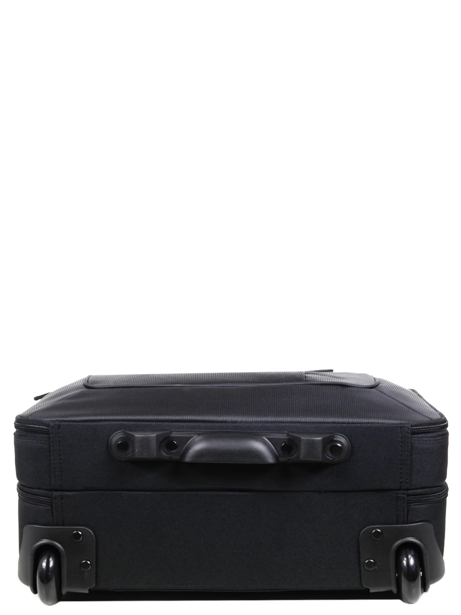 Ce pilot case 2 roues Case Logic Business se ferme à l’aide d’une glissière de qualité et peut contenir jusqu’à 30 litres. A l’intérieur, il dispose tout d’abord d’un premier compartiment dédié au rangement de vêtements. Ce dernier est entièrement doublé et doté de 2 poches en filet ainsi que de 2 sangles croisées et élastiques pour maintenir solidement pliés les habits malgré les trajets.