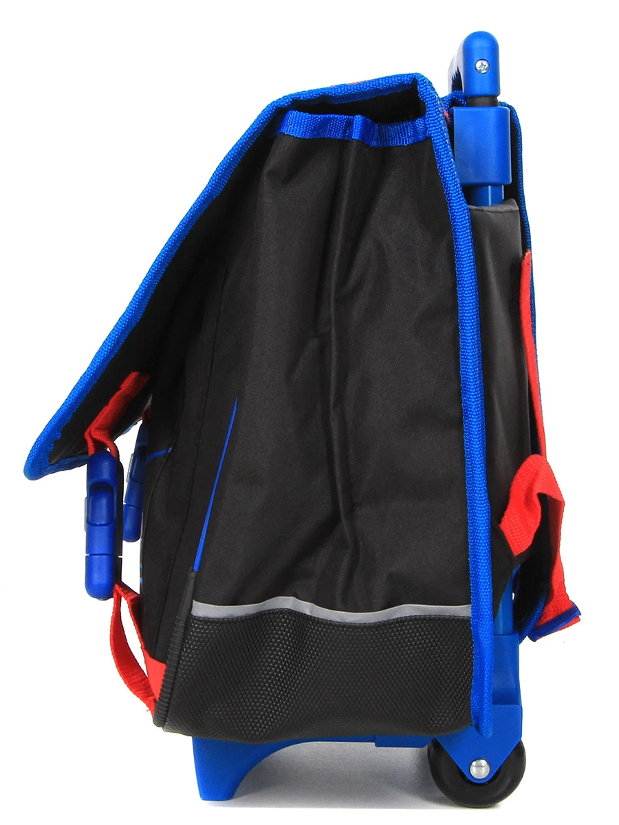 Le cartable à roulettes Spider-Man Web-slinger 41 cm protège son contenu en cas d’intempéries grâce à son revêtement en polyester, ses patins anti-éraflures, sa doublure intérieure et son fond déperlant. Il permet aux petits fans de comics du CE2 au CM2 d’emporter tous les cahiers et classeurs A4 et 24 x 32 sans se fatiguer. Des détails réfléchissants permettent à son propriétaire d’être vu sur le chemin de l’école.