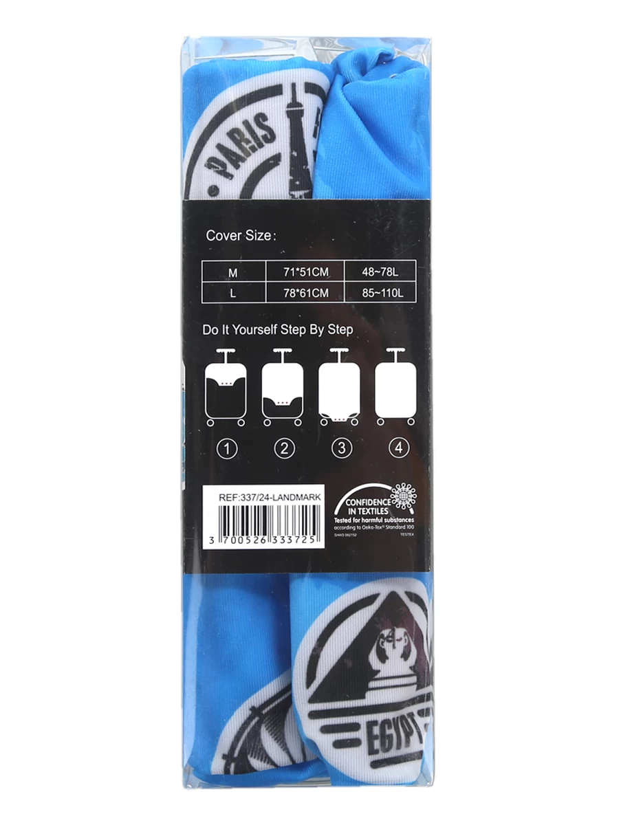 La protection pour valise Airtex est dotée d’attaches à pression pour se placer en toute simplicité sur le bagage. Elle offre un design très tendance avec divers patchs rappelant l’univers du voyage et des aéroports. En outre, des ouvertures sur le dessus et les côtés permettent de laisser accessibles à la fois la poignée télescopique et les poignées de portage.