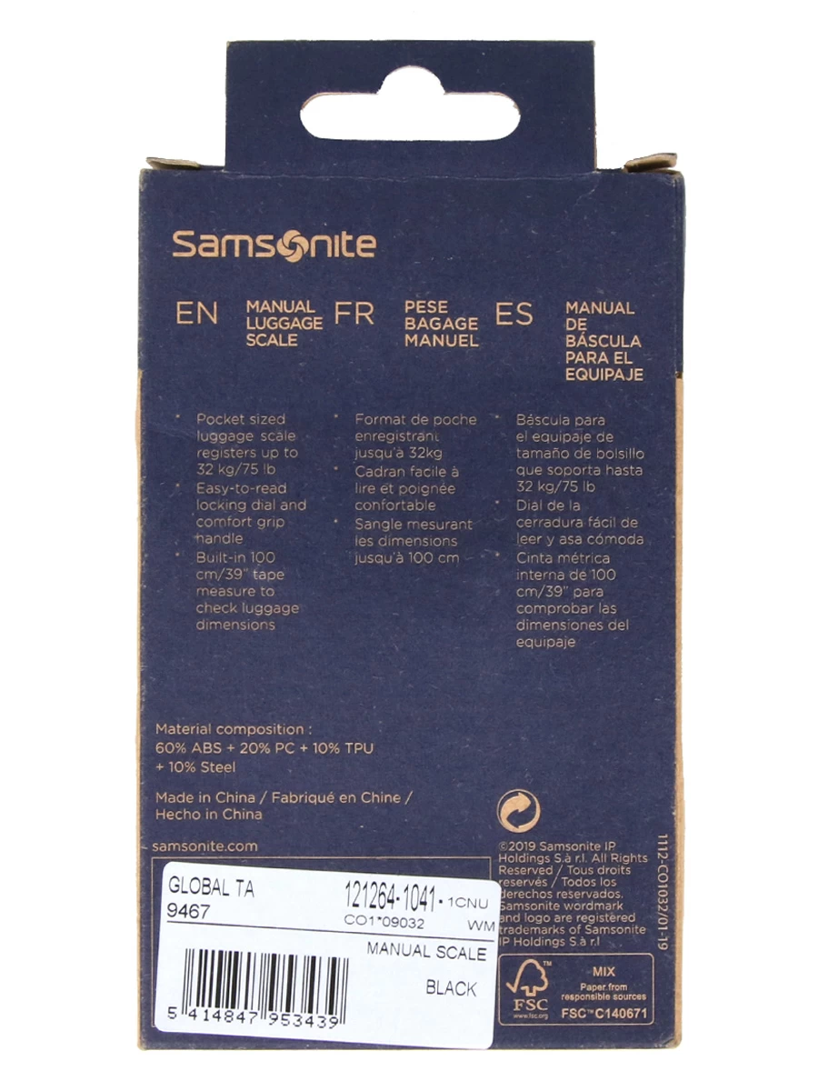 Le pèse bagage manuel Samsonite est l’accessoire parfait pour partir en voyage sans crainte. Il permet de vérifier le poids de son bagage avant de partir. Ne pouvant supporter que 30 Kg maximum, il n’y a pas de risque de dépasser les limites de poids autorisés dans les aéroports. Il fonctionne très simplement à l’aide d’un crochet pour bagage et d’une balance interne. Le curseur pointe ensuite précisément le poids calculé.