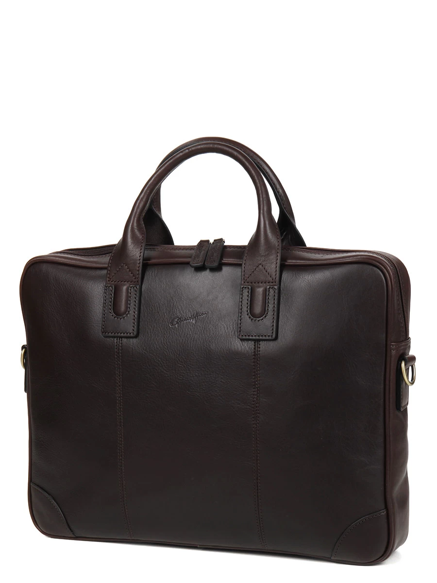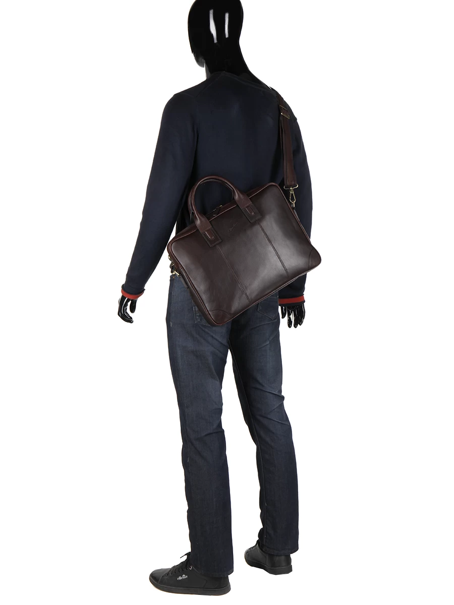 Pour transporter le sac business Gérard Hénon Renaissance on peut au choix utiliser ses 2 anses en cuir souples et maniables ou sa bandoulière en cuir, renforcée et ajustable. Son passant pour trolley, discret, le rend indispensable lors des voyages avec bagages pour le travail. Grâce à son fond en cuir, on peut le déposer au sol sans crainte. Il est également possible de le garder en bon état lorsqu’il est rangé en utilisant le sac fourni. Ce dernier le préserve de la poussière et des pièces humides.
