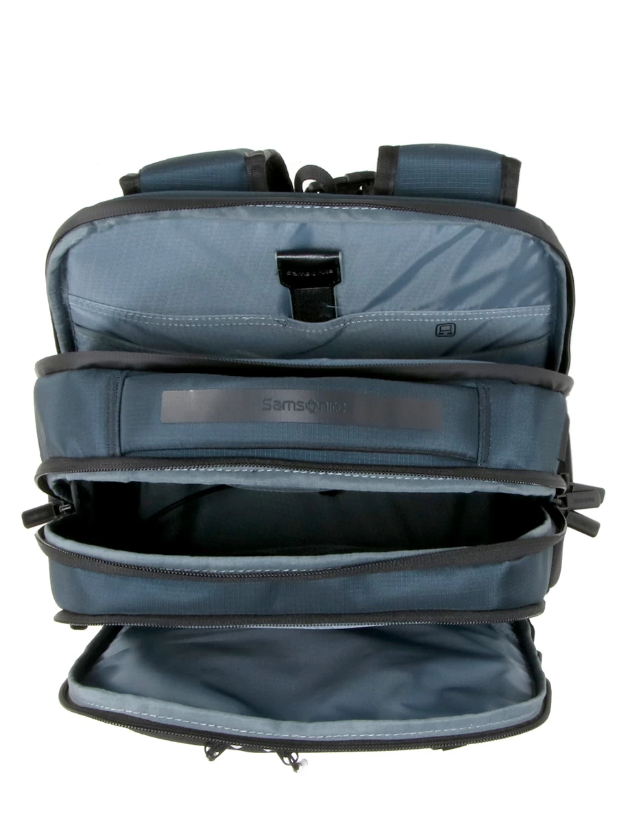 Le sac à dos ordinateur Samsonite Biz2Go 14.1 pouces est idéal pour les professionnels citadins. Son look moderne confère à son porteur une allure jeune et dynamique. Conçu en polyester fait à partir de bouteilles recyclées, il est éco-responsable. Sa fermeture à glissière inversée, sa doublure intérieure et son fond renforcé sont pensés pour préserver ordinateur, tablette et affaires de bureau de l’humidité. Ses trois compartiments et ses poches multiples favorisent en prime une organisation soigneuse, et son port USB garantit à son porteur de ne jamais tomber à court de batterie.