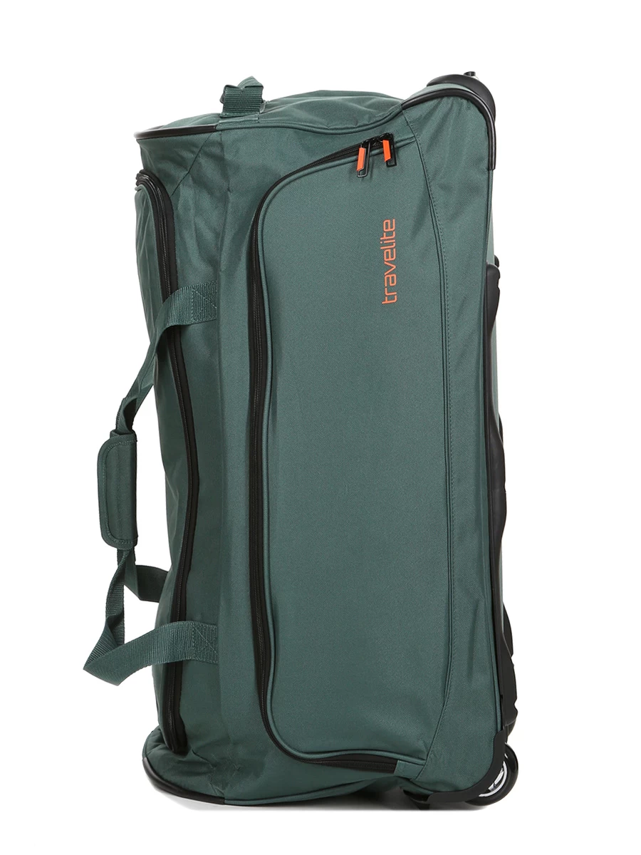 Le sac trolley Travelite Basics offre un compartiment d’une capacité de 89 L accessible par une large ouverture en U pour faciliter son chargement. Là, tenues de rechanges, paires de chaussures supplémentaires, vestes et pulls trouvent sans difficulté une place. Dans sa grande poche intérieure zippée, il est possible de ranger une trousse de toilette, du petit linge ou divers effets personnels comme le roman en cours de lecture. A l’extérieur, une grande poche frontale à fermeture éclair permet de laisser à portée de main certaines affaires.
