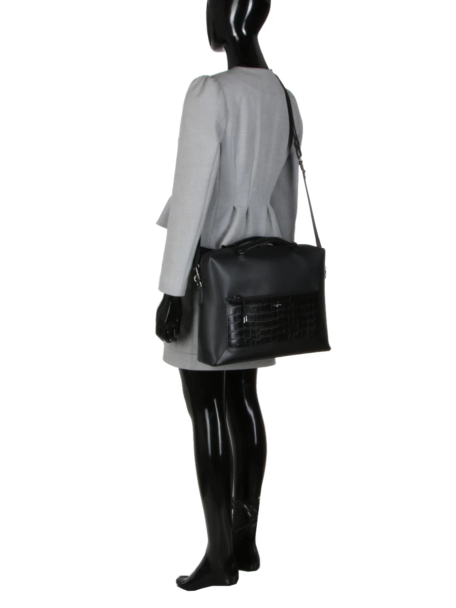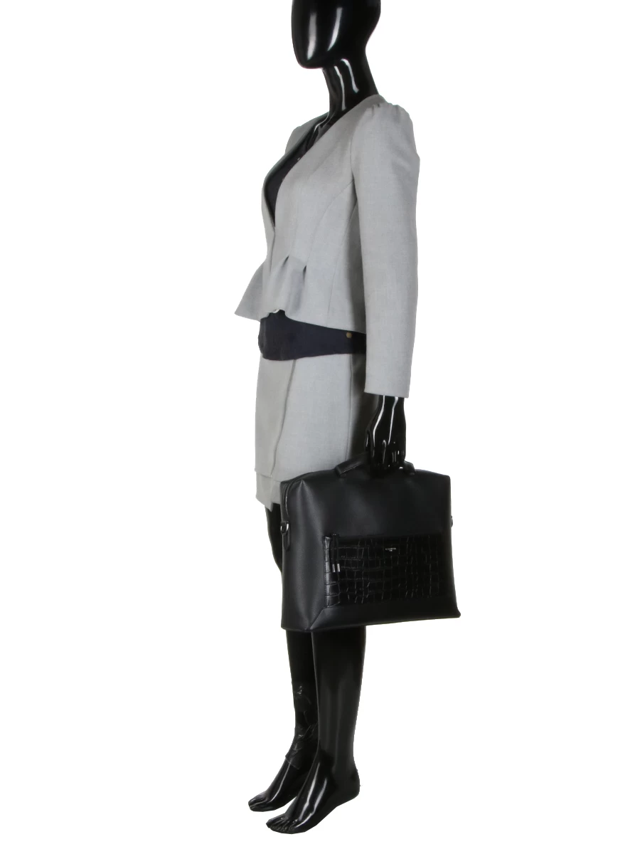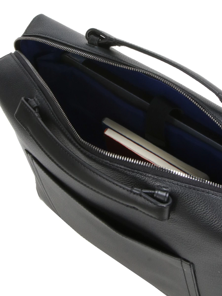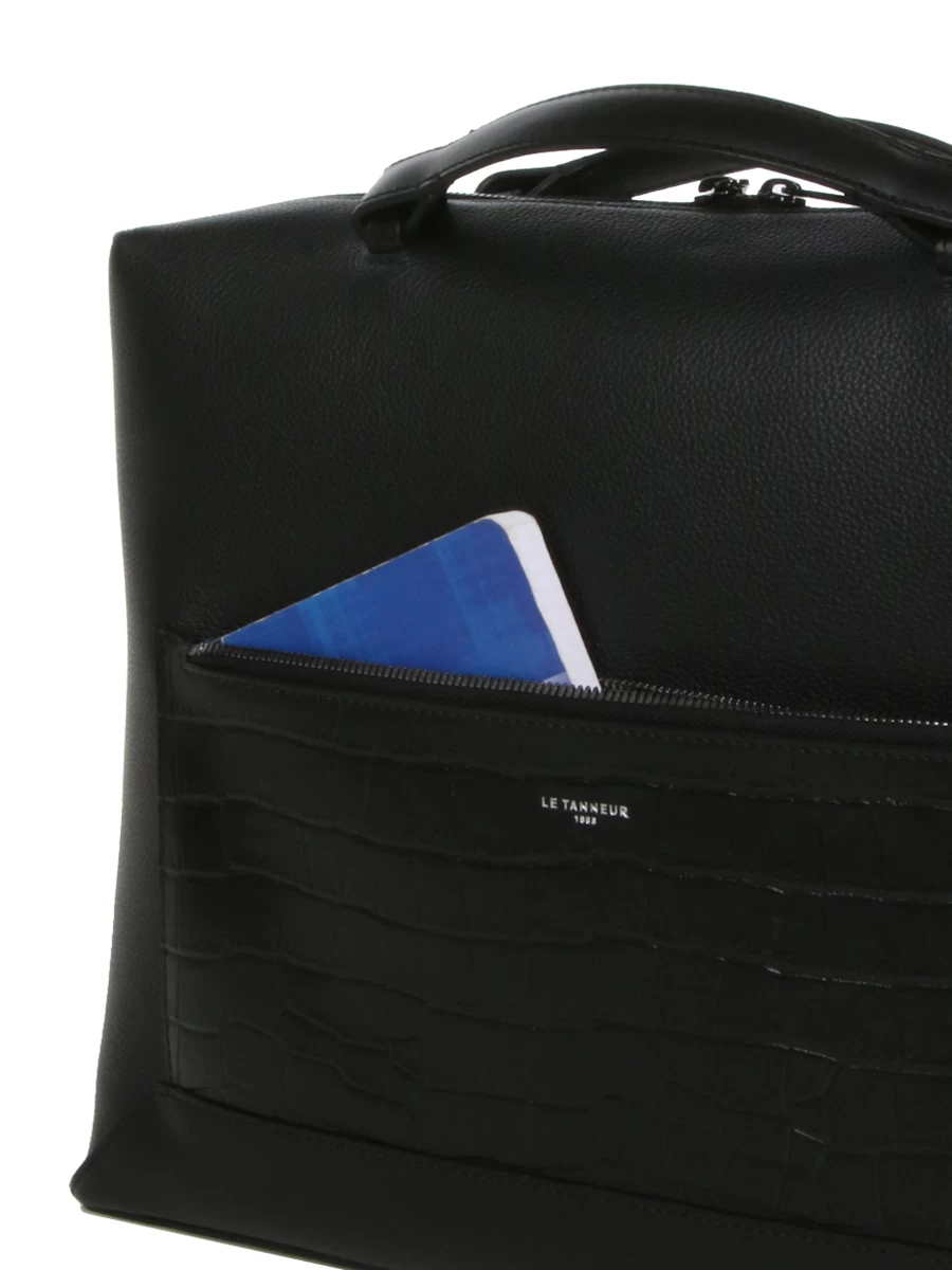 La sacoche business Le Tanneur Nathan possède un grand compartiment dotĂ© d’une poche matelassĂ©e avec patte de maintien pour ordinateur 14 pouces, une poche zippĂ©e et deux poches plates pour organiser les accessoires. Il peut Ă©galement accueillir de nombreux dossiers au format A4. La poche frontale embossĂ©e façon croco est quant Ă elle idĂ©ale pour un livre ou un en-cas par exemple.