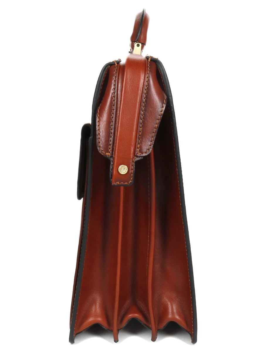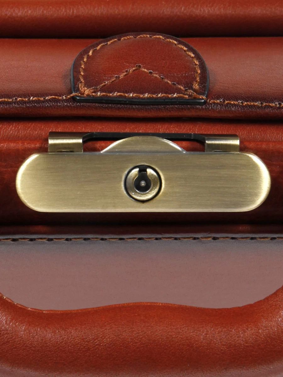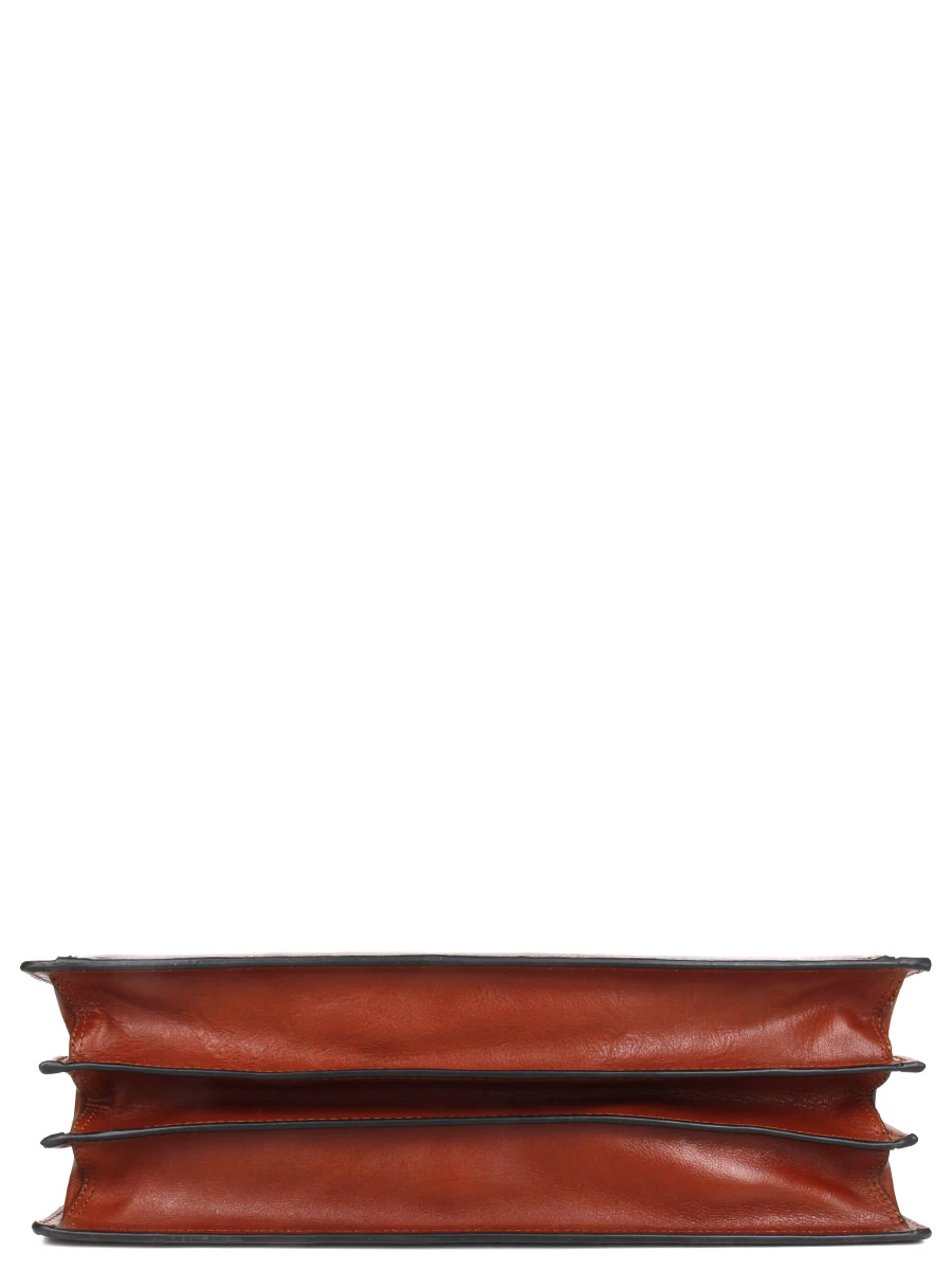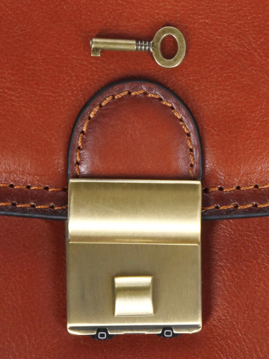 Ce cartable Katana Specialist – 3 soufflets se cloisonne avec une fermeture à attache métallique façon diligence munie d’une serrure à clef. La poche avant se ferme elle aussi avec un système d’attache doté d’une serrure à code cette fois-ci. Pour le manipuler, il se porte à la main à l’aide de son anse de portage en cuir rigide. Il est fourni avec une housse de rangement qui le gardera à l’abri des salissures lorsqu’il n’est plus d’utilité.
