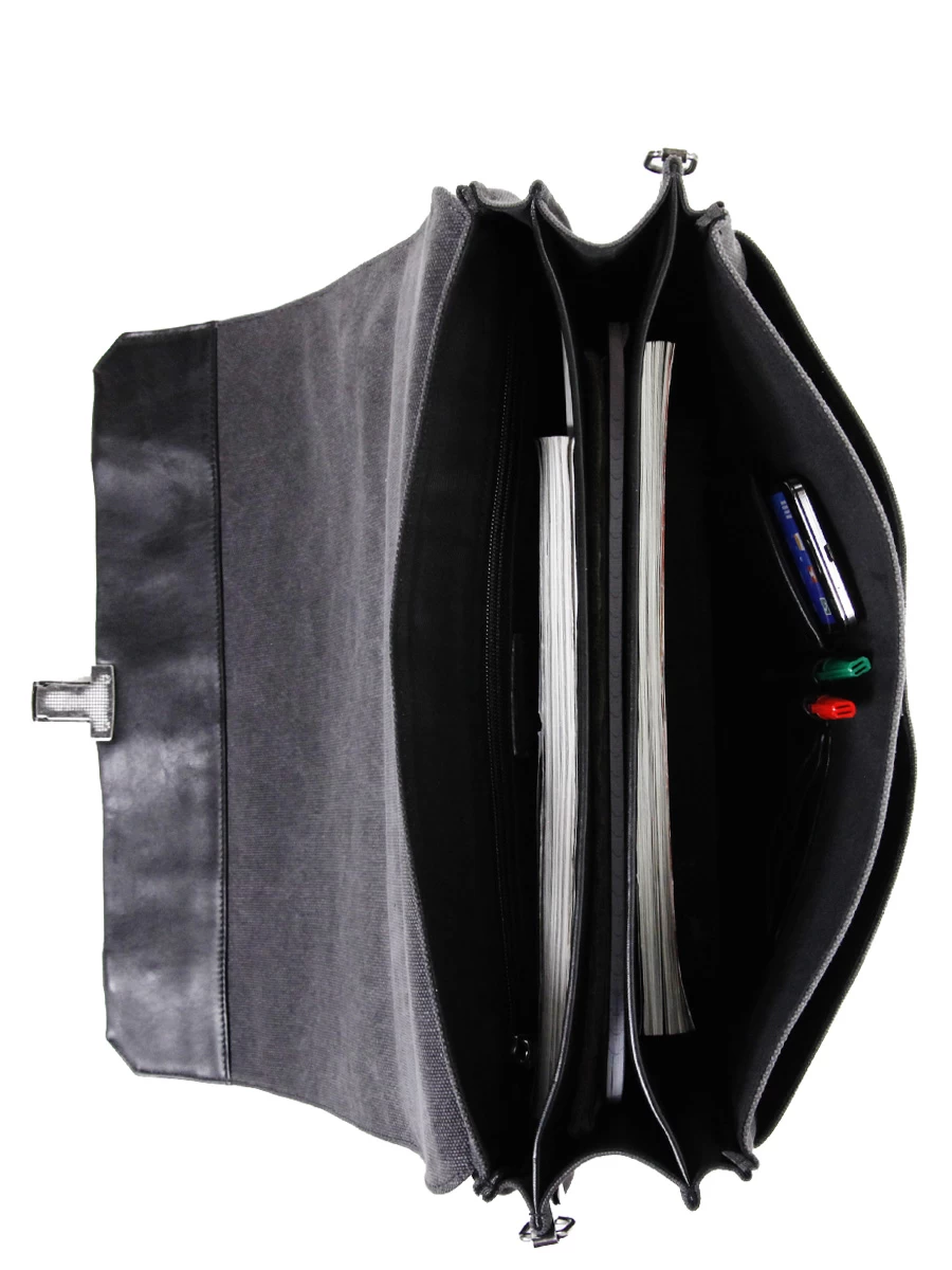 La serviette Wylson Brenner 40 cm a tout pour plaire aux actifs pour leurs déplacements professionnels ou leur quotidien de travail : un design sobre et casual chic, une conception soignée et travaillée en coton, des renforts de protection sur le dessous, ainsi que de belles finitions en cuir (sur la bandoulière, poignée, fond…). Il est fourni avec une belle housse de rangement, logotée au nom de la marque.