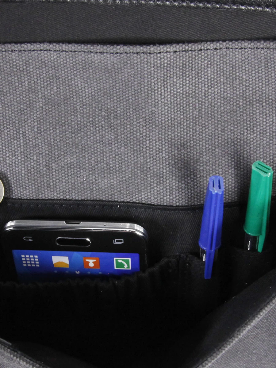Le cartable Wylson Brenner se ferme à l’aide d’un rabat, muni d’une attache et d’une serrure à clé. A l’intérieur, il est équipé de 3 soufflets de rangement entièrement doublés. Le premier espace est doté d’une poche zippée, le second est vide et peut contenir divers documents / dossiers de travail. Le troisième et dernière soufflet est de type « organizer », c’est-à-dire qu’il est muni d’une poche pour téléphone portable, de porte stylos et de divers emplacements pour cartes de visite.