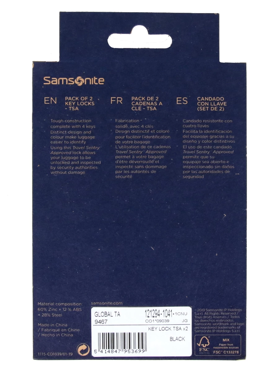 Le set de 2 cadenas à clé TSA grande anse Samsonite s’adresse aux grands voyageurs partant avec de nombreux bagages tout comme aux citadins souhaitant simplement sécuriser leur sac à dos pour emprunter sereinement les transports en commun. Conçus dans un alliage en zinc robuste, ils sont résistants aux coups et aux chocs. Disposant d’une fermeture aux normes TSA, ils permettent de passer les douanes états-uniennes en toute tranquillité. Ils sont en prime garantis 2 ans par la marque.