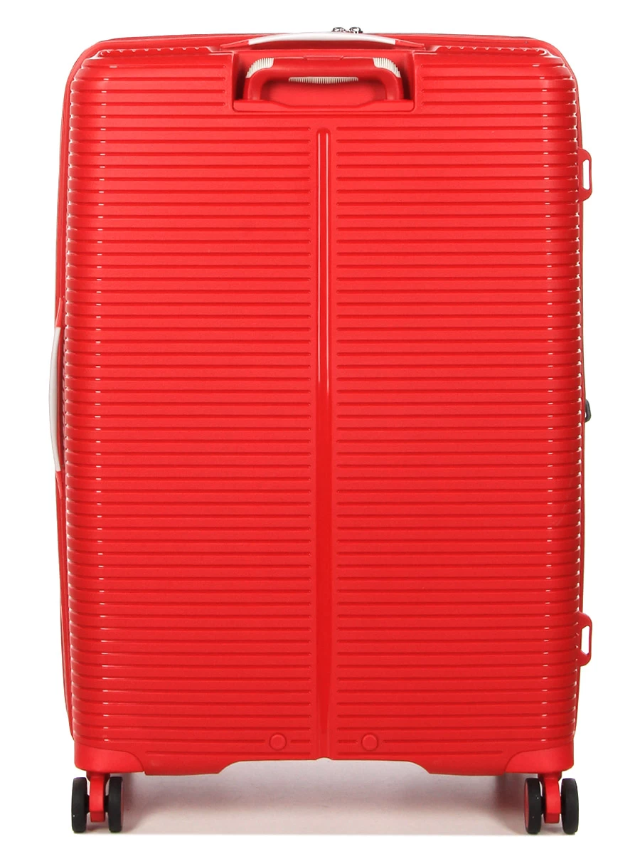 La valise Jump Sondo se tracte avec aisance à l’aide de sa poignée télescopique double tube et de ses 4 doubles roulettes multidirectionnelles. Pour une bonne prise en main, notamment pour franchir une volée de marches, on peut opter pour l’une ou l’autre de ses 2 poignées souples et douces. Son verrouillage se fait en toute simplicité en utilisant sa serrure TSA à code encastrée. Cette dernière est ergonomiquement placée sur le dessus de sa coque pour ne pas avoir à se plier en 2 pour sécuriser l’accès à son contenu. Enfin, sur le côté, on trouve des patins rigides pour une plus grande résistance aux chocs.