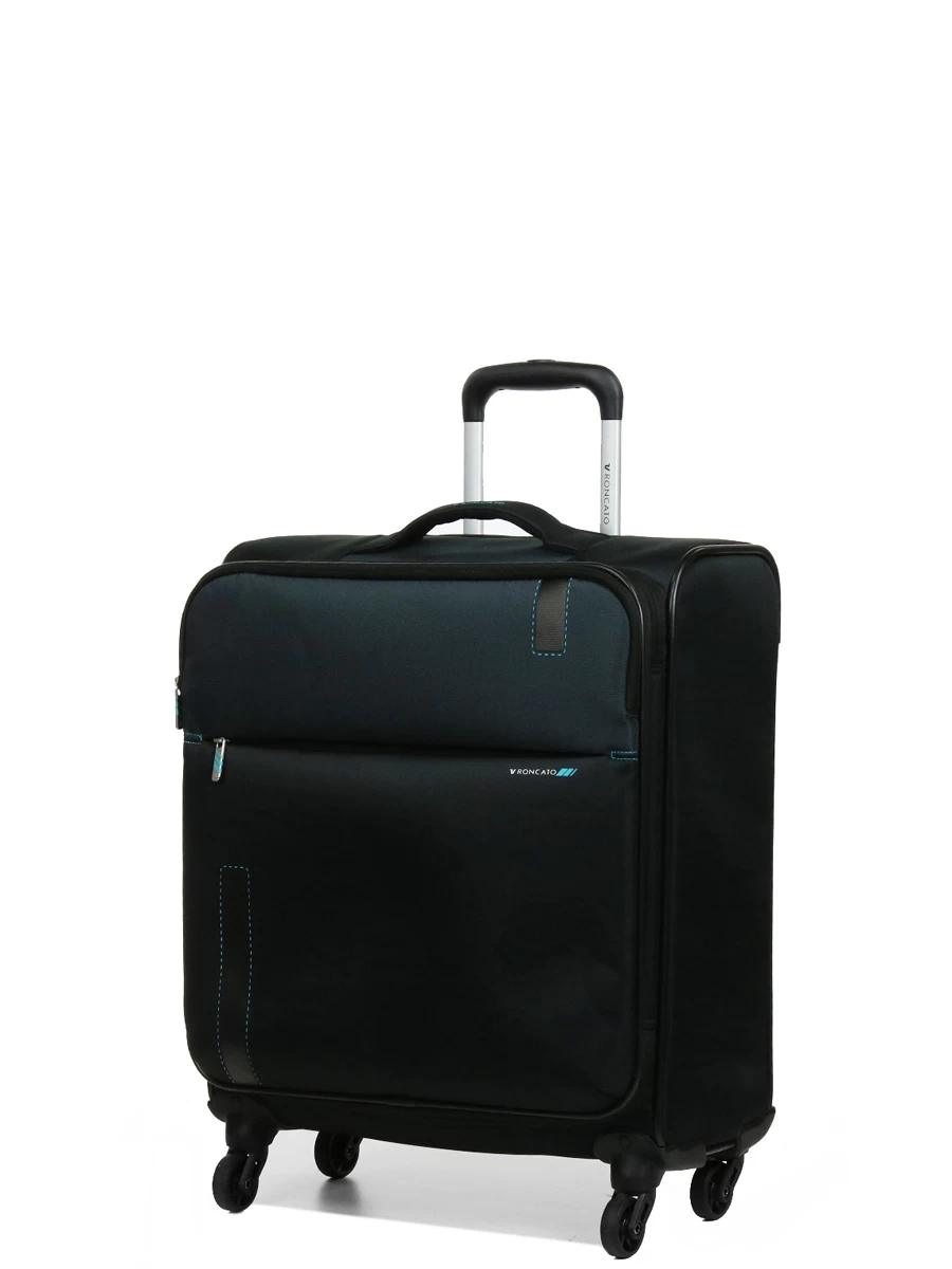 La valise Roncato Speed 56 cm allie un design moderne à un format compact et une grande praticité. Lignes épurées et finitions colorées lui donnent une allure intemporelle et élégante. Elle est parfaite pour accompagner les voyageurs le temps d’une courte escapade. Sa petite taille est en plus compatible avec les normes de certaines des compagnies aériennes les plus strictes. Fabriqué en polyester et nylon de qualité, son revêtement résiste aussi bien aux abrasions qu’aux intempéries. Gage de sa robustesse, elle dispose d’une garantie de 2 ans.